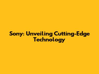 Sony: Unveiling Cutting-Edge Technology