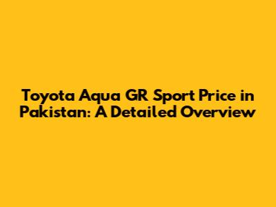 Toyota Aqua GR Sport Price In Pakistan: A Detailed Overview