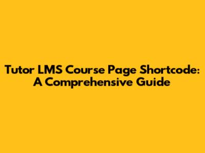 Tutor LMS Course Page Shortcode: A Comprehensive Guide