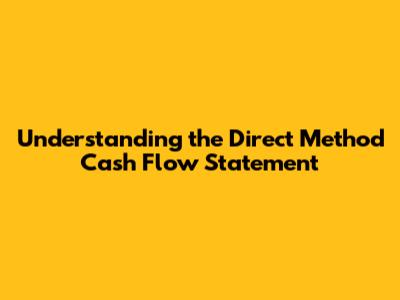 Understanding The Direct Method Cash Flow Statement