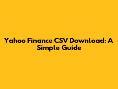 Yahoo Finance CSV Download: A Simple Guide